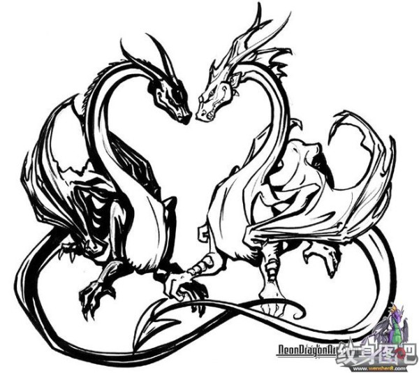 龙纹身手稿_一组老传统黑灰龙手稿纹身图案