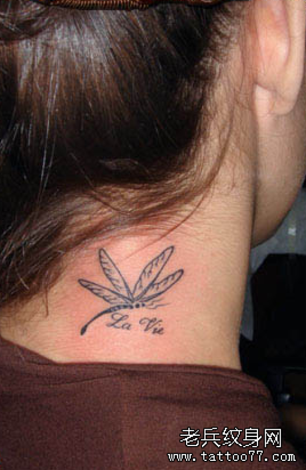 纹身图吧分享一款颈部蜻蜓文身图案