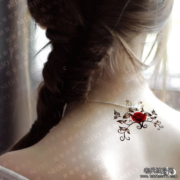 后颈部纹身小图--9张女生脖子后颈处的简约纹身图案