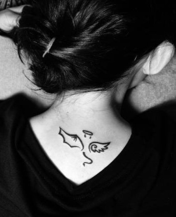 女孩子颈部好看时尚的图腾翅膀纹身图案