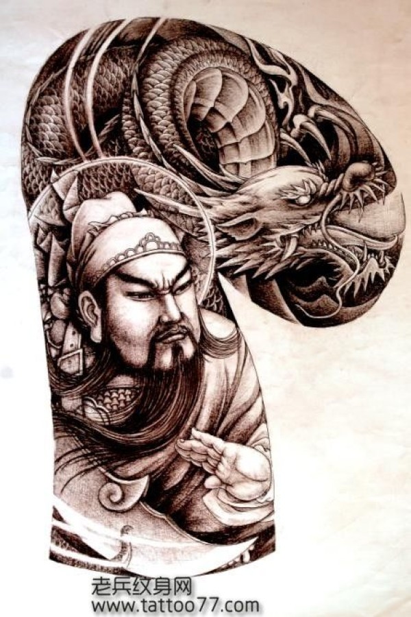 龙纹身手稿_一组老传统黑灰龙手稿纹身图案