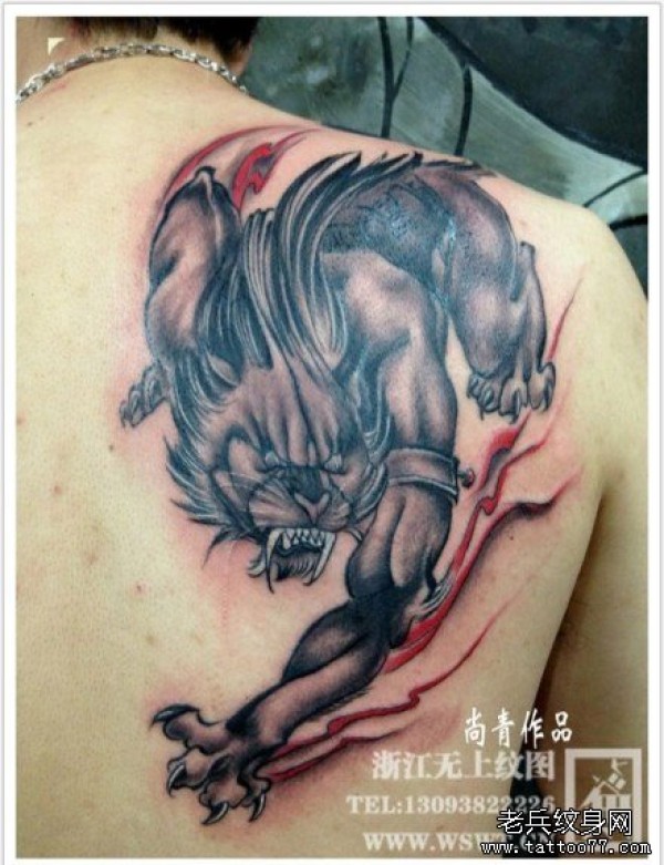 男生后背很酷霸气的野兽纹身图案