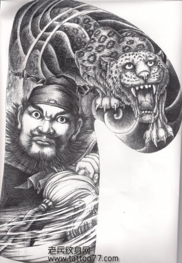 半胛纹身手稿―半胛张飞豹子纹身手稿