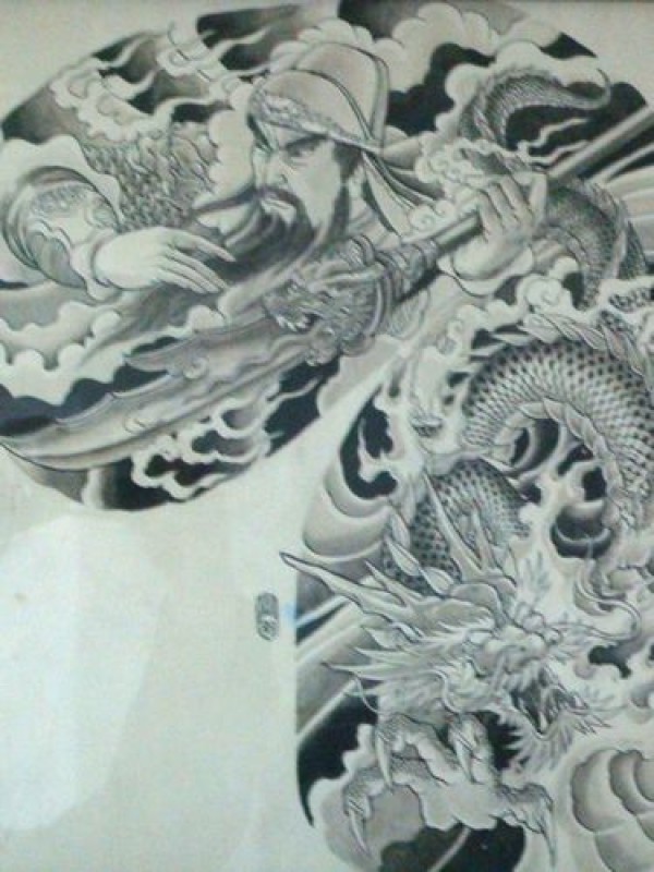 霸气关公龙半胛纹身图案
