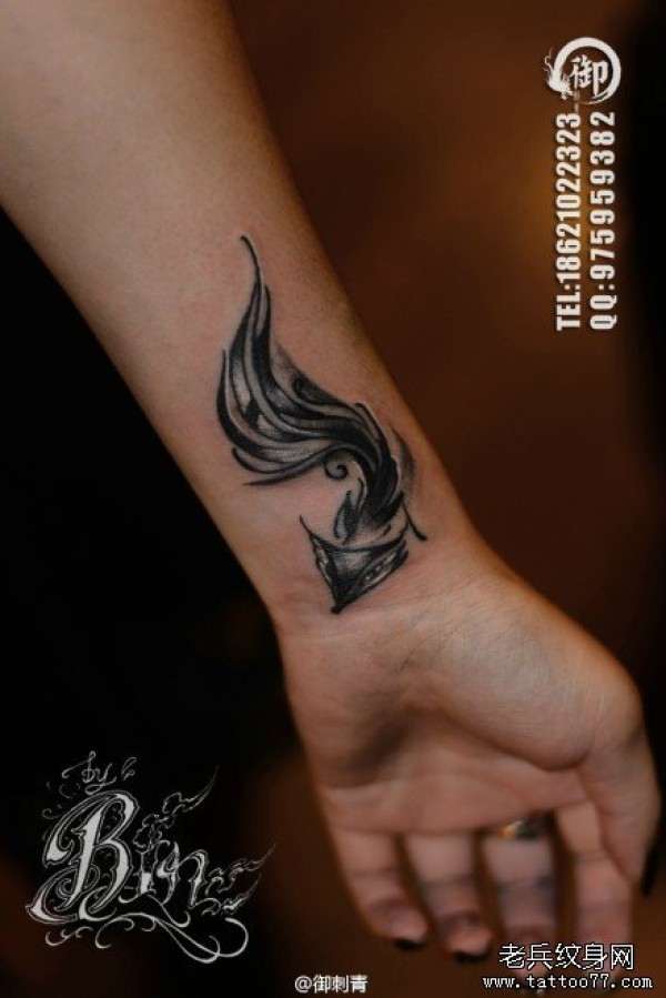 女生手腕潮流时尚的一款小狐狸纹身图案