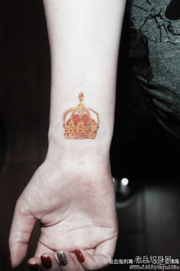 女生手腕小巧精美的皇冠纹身图案