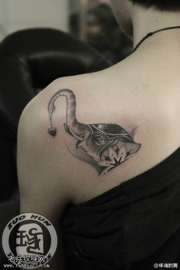 女生肩花纹身_15张女性双肩对称的肩花纹身图案作品图片