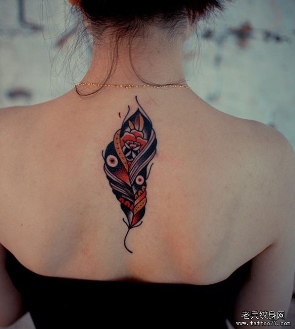 纹身图吧分享一款女生肩部羽毛纹身图案