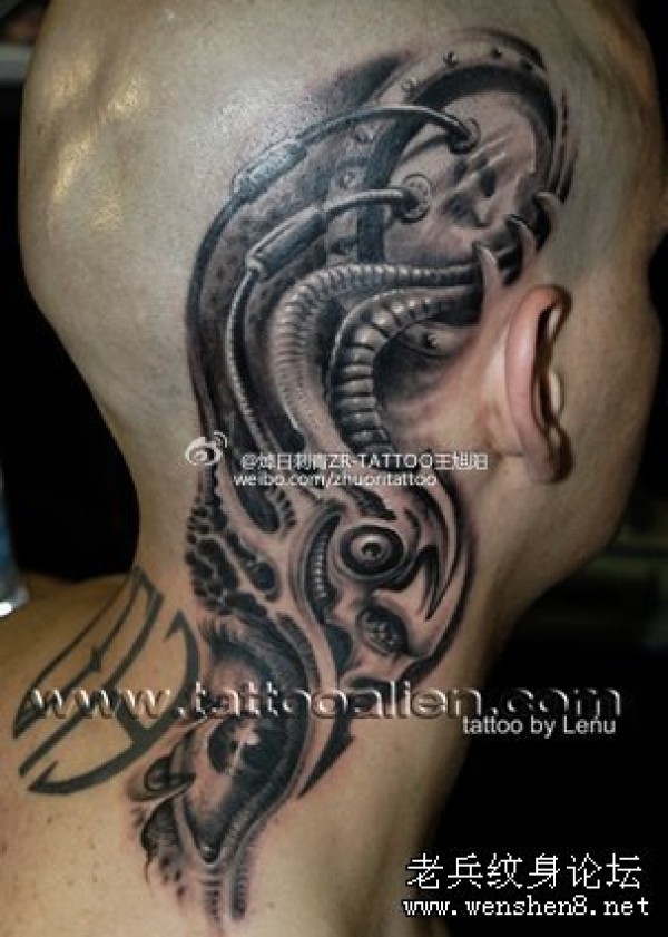 霸气男头部时尚纹身图片_头部纹身图案大全_纹身图吧