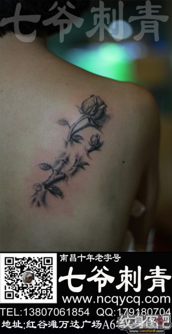 女生肩花纹身_15张女性双肩对称的肩花纹身图案作品图片