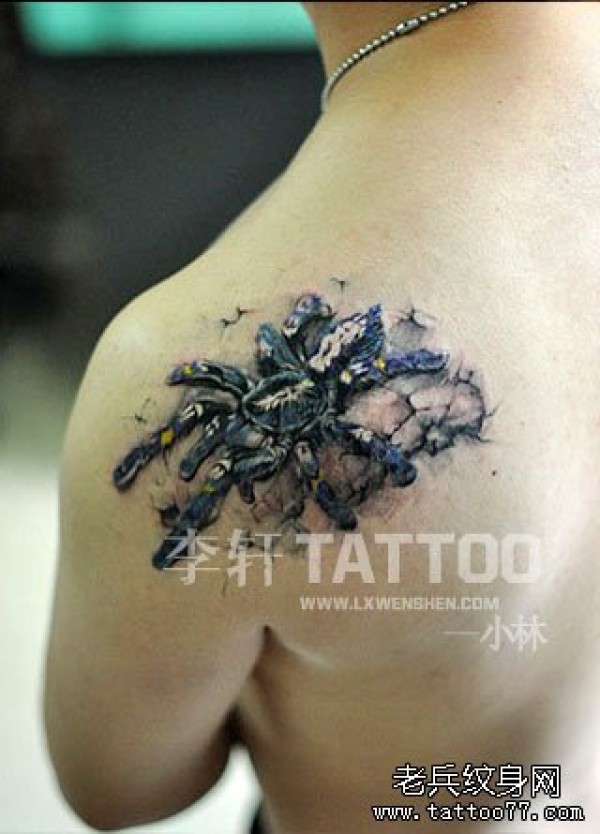 男生肩背超酷的蜘蛛纹身图案