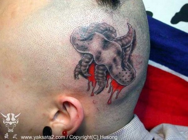 霸气男头部时尚纹身图片_头部纹身图案大全_纹身图吧