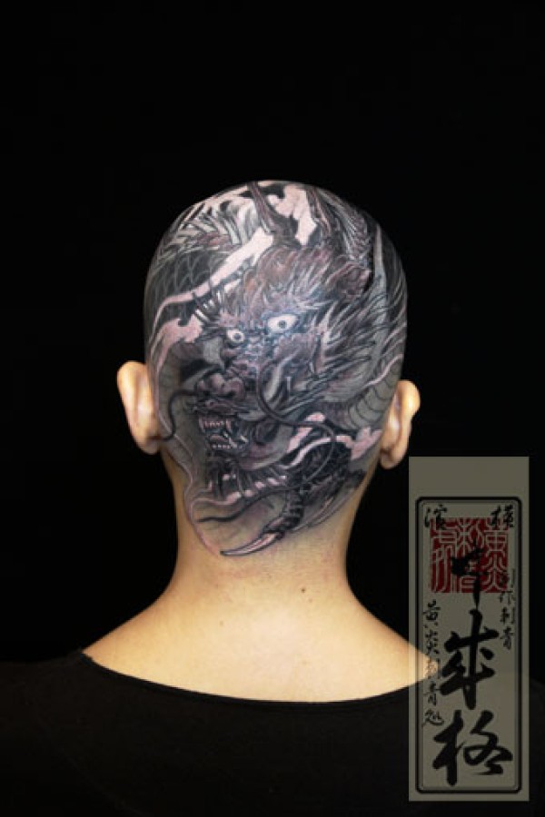霸气男头部时尚纹身图片_头部纹身图案大全_纹身图吧