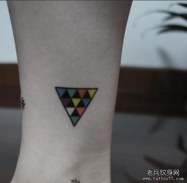 纹身图吧分享一款手腕彩色三角形纹身图案