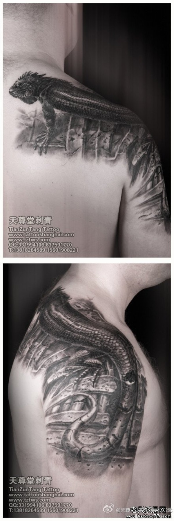手臂到肩背超酷的蜥蜴纹身图案