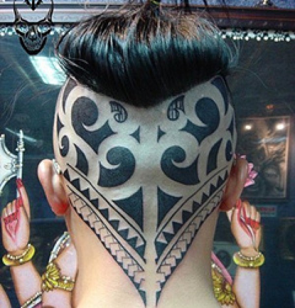 头部纹身图案 个性十足的男生头部纹身图案