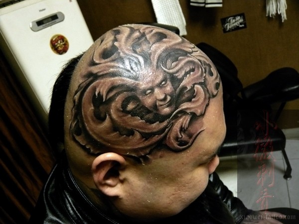 霸气男头部时尚纹身图片_头部纹身图案大全_纹身图吧