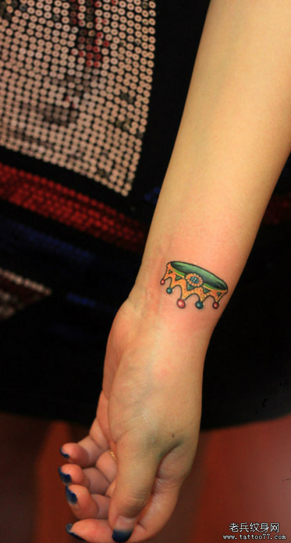 纹身图吧分享一款手腕小清新皇冠文身图案