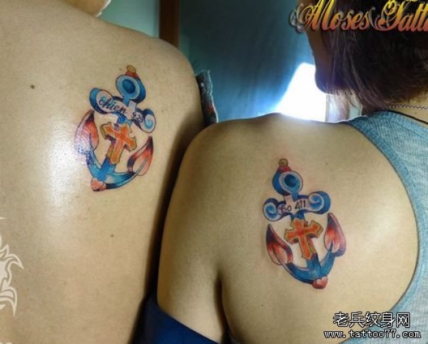肩背一款精美的情侣船锚纹身图案