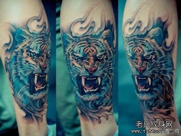 腿部超帅很酷的虎头纹身图案