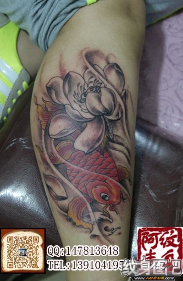腿部鱼纹身 彩色纹身图片 冬天纹身 丰台最好的纹身店 丰台纹身 阿丰纹身