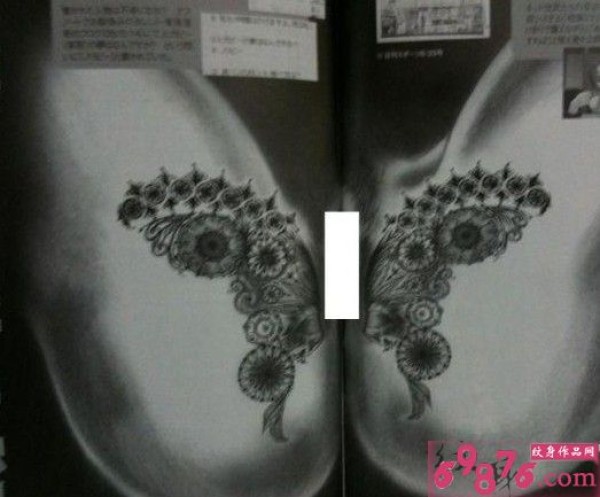 女生后腰纹身黑白灰风格抽象线条纹身图案