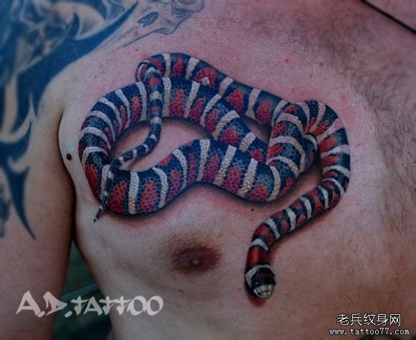男人前胸精美帅气的欧美彩色蛇纹身图案