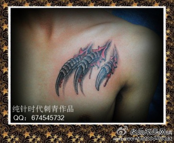 前胸超酷的撕皮爪子纹身图案