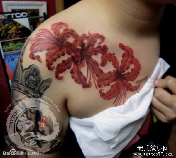女性大花胸纹身_43张霸气漂亮的女性大花胸纹身图案作品