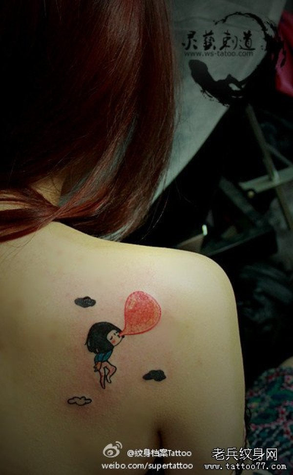 女生背部吹气球的女孩子纹身图案
