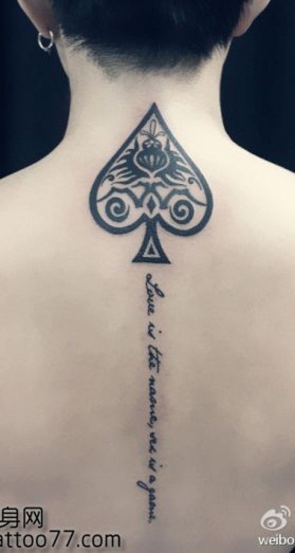 背部图腾黑桃字母纹身图案