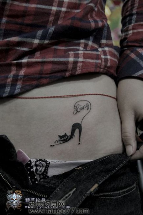 女孩子喜欢的腹部图腾猫咪纹身图案