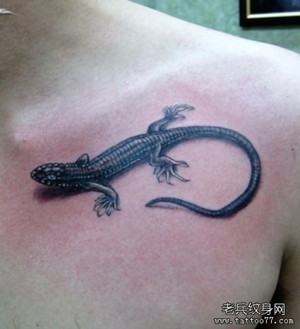 胸部一款黑白蜥蜴纹身图案