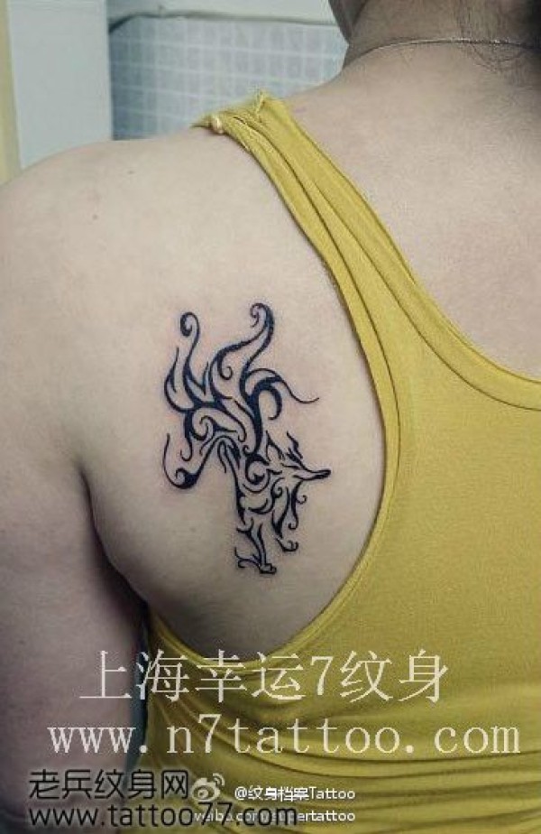 女孩子背部好看的图腾狐狸纹身图案