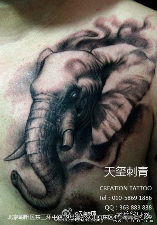 男人前胸凶悍的大象纹身图案