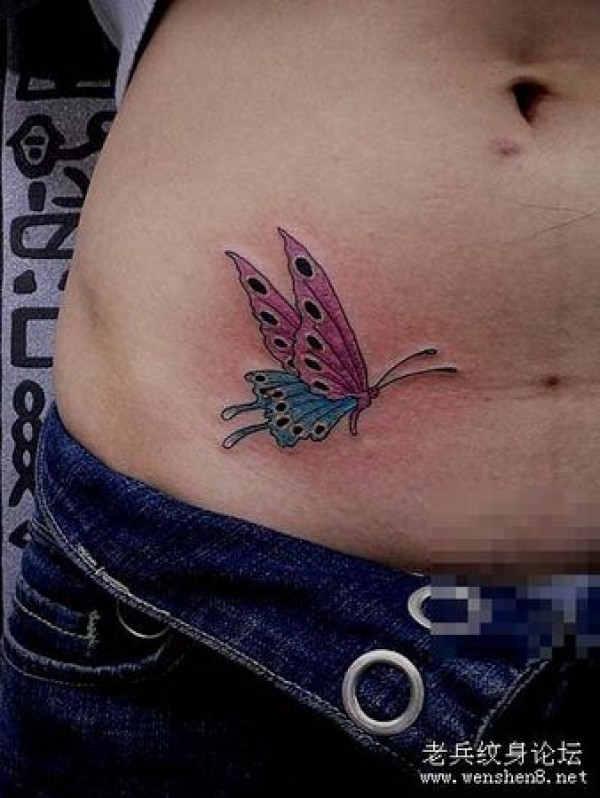 经典时尚美女腹部彩色蝴蝶纹身图案