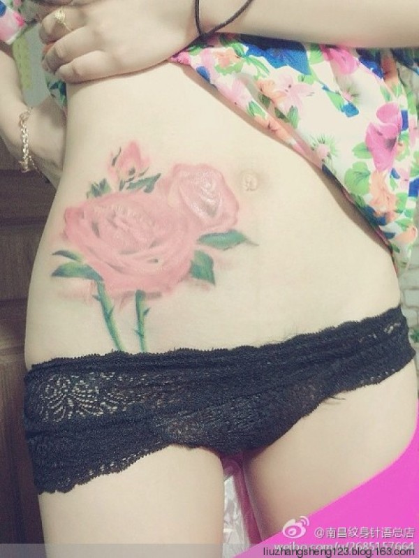 分享一款腰部时尚性感的蝶恋花纹身图案_腰部纹身图案大全_纹身图吧