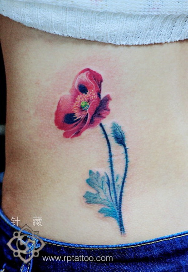女性腰部莲花花纹刺青_腰部纹身图案大全_纹身图吧
