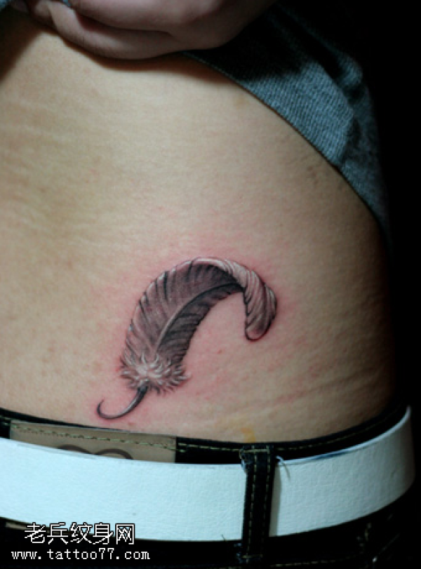 小清新腹部黑白羽毛纹身图案