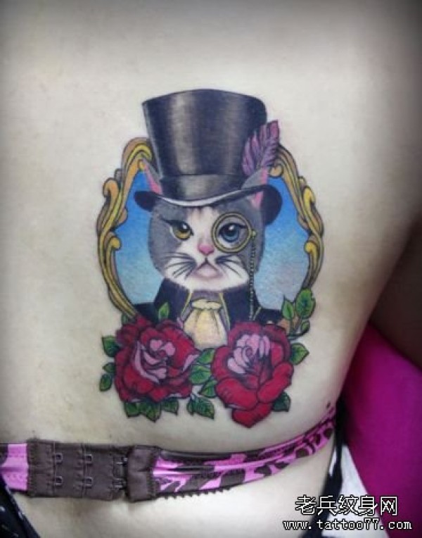 美女背部另类的猫咪纹身图案