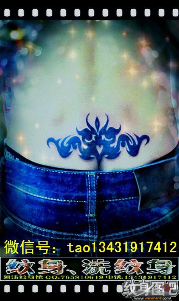 分享一款腰部时尚性感的蝶恋花纹身图案_腰部纹身图案大全_纹身图吧