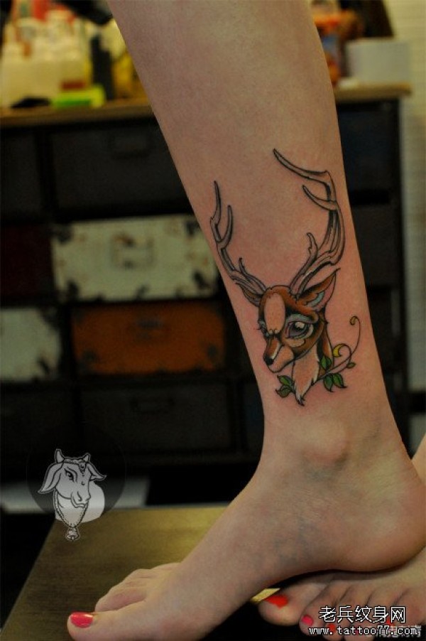 女生腿部可爱时尚的小鹿纹身图案