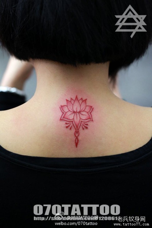 纹身图吧提供一款颈部莲花纹身图案