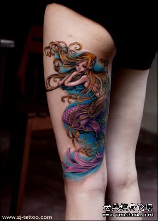 经典超酷超赞的美女腿部美人鱼纹身图案