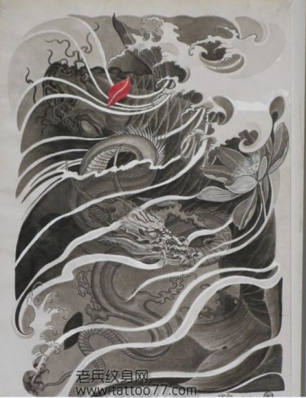 龙纹身手稿_一组老传统黑灰龙手稿纹身图案