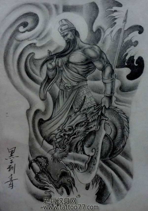 龙纹身手稿_一组老传统黑灰龙手稿纹身图案