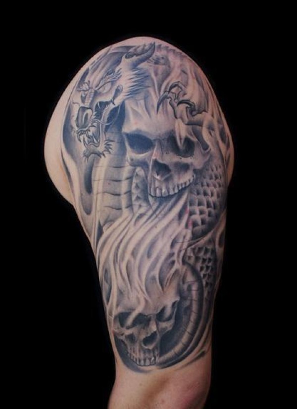 龙纹身手稿_一组老传统黑灰龙手稿纹身图案