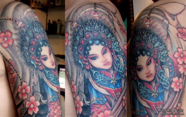 手臂纹身图案之超酷的手臂纹身美女花旦纹身图案(精品)