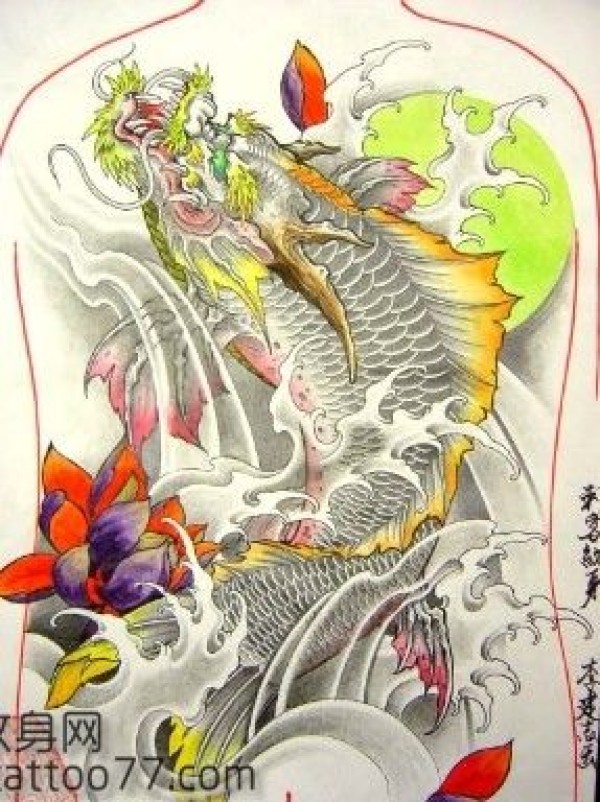 经典霸气的满背鳌鱼纹身手稿