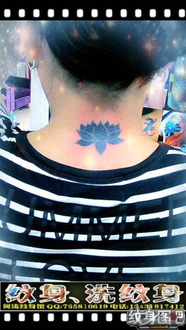 后颈部纹身小图--9张女生脖子后颈处的简约纹身图案